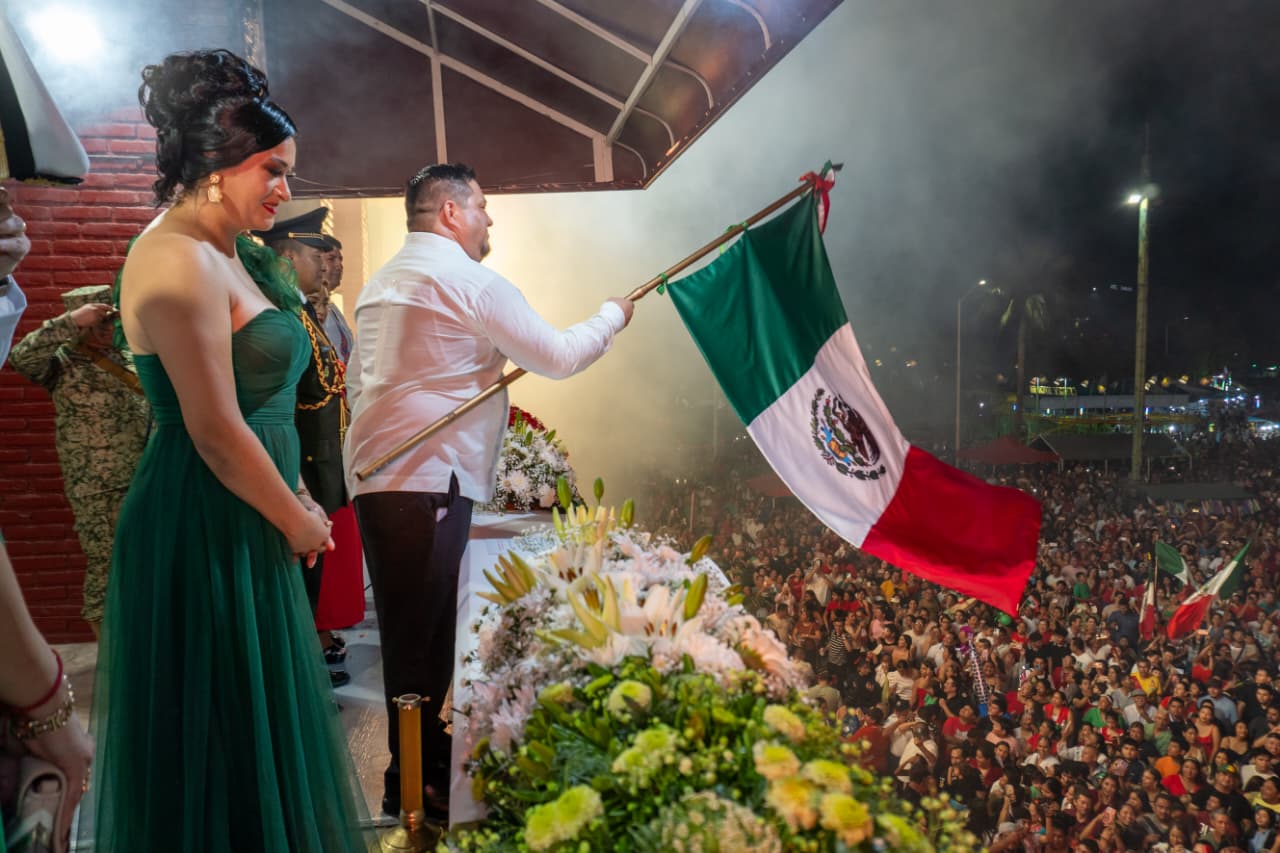 Una vez que Manuel Esquivel encendió el pebetero con el fuego patrio en la explanada municipal, junto a su esposa y Presidenta Honoraria del DIF Municipal, Dulce Citlali Rodríguez Rodríguez, como del jefe de Estado Mayor de la XVI Zona Naval, Ángel Julián Melo Moya; el Comandante del 82º Batallón de Infantería, Carlos Cruz Aguirre; y la Diputada Local, Itzé Camacho, subieron al balcón presidencial para dar inicio al acto del Grito de Independencia.
