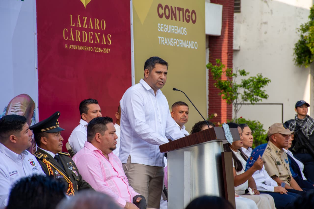 Cd. Lázaro Cárdenas, Mich., a 16 de septiembre de 2025.- Con motivo del CCXV Aniversario del inicio de la gesta heroica de 1810, el Gobierno Municipal de Lázaro Cárdenas llevó a cabo un acto cívico solemne en la explanada del Palacio Municipal, en el que autoridades municipales, militares, y de la sociedad civil, encabezados por el Presidente Municipal, Ing. Manuel Esquivel Bejarano, rindieron homenaje a los héroes de la Patria que dieron libertad y soberanía a México.