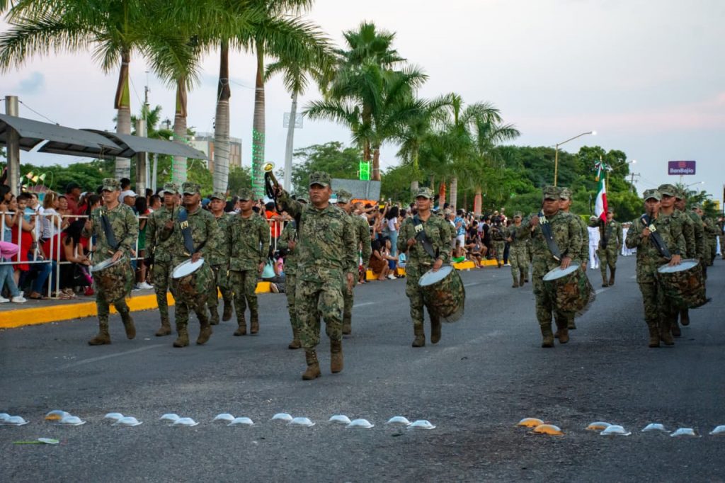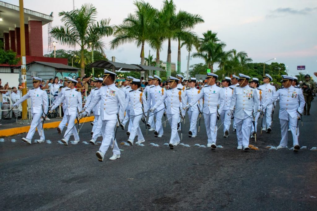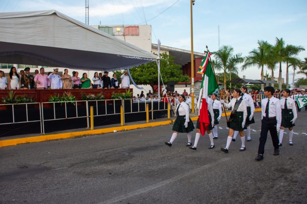 Cd. Lázaro Cardenas, Mich., a 16 de Septiembre del 2025.-Siguiendo con las tradiciones de aniversario de inicio de independencia, este martes autoridades navales, militares y municipales encabezaron el desfile cívico- militar, el cual tuvo una importante afluencia de personas, quienes disfrutaron desfilar a las diferentes escuelas, como también de la exhibición de la Secretaria de Marina y Defensa.