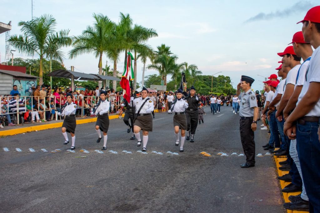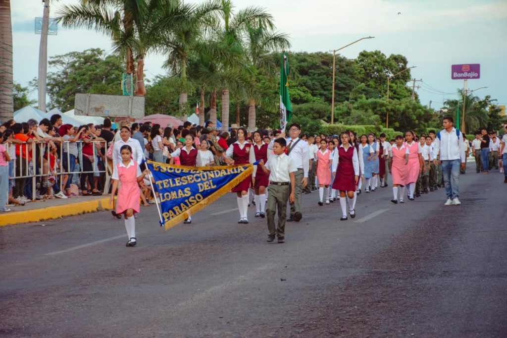 Las primeras escuelas en desfilar fueron las escuelas de nivel preescolar; entre los que destacan la “Prof. Verónica Reyes” y “Leonardo Da Vinci”; mientras que en primarias desfilaron “Melchor Ocampo”, “Ignacio López Rayón”, “Justo Sierra” y “Mariano Michelena”; por su parte entre las escuelas preparatorias se encuentra “CETMAR 16”, “Conalep 035”, Cecyte 05”, y Preparatoria ICEP.