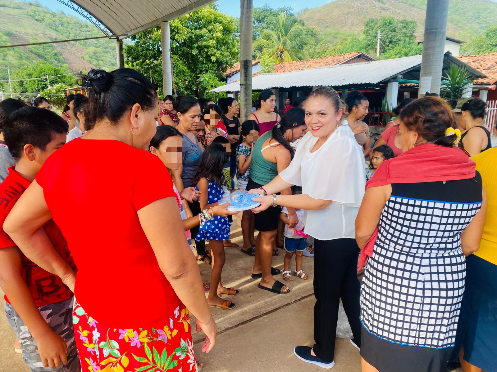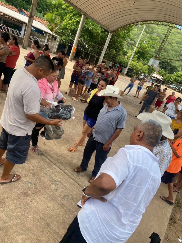 En esta jornada la presidenta honoraria, la maestra Reyna Baldovinos acompañada de la síndica procuradora, regidores y colaboradores, visitaron las comunidades rurales de Las Juntas de los Ríos, El Carían, Las Guacamayas, El Muerto y Los Almendros, donde entregaron despensas, apoyos médicos y calzado a los habitantes.