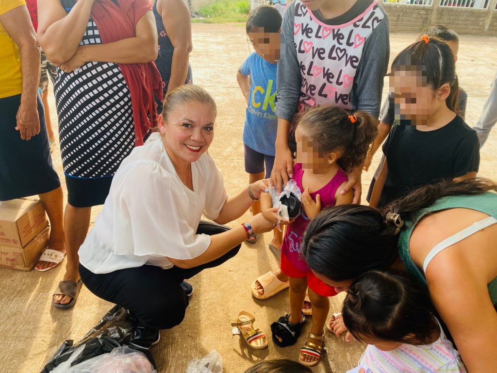 *La presidenta de la benefactora Reyna Baldovinos, les llevo despensas, calzado y apoyos médico a familias