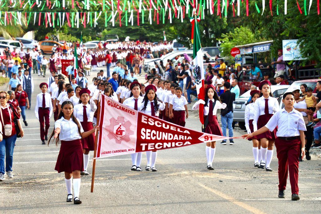 De igual manera desfiló la Sec. Tec. 134 de Acalpican de Morelos, Sec. Tec. 106 de Buenos Aires; Telesecundaria Benito Juárez de El Habillal; Colegio Lumen; Sec. Tec. 91 de Las Guacamayas; Sec. Tec. La Mira; Sec. Tec. Educación y Patria de La Mira; Telesecundaria de Barra de Pichi, Sec. Tec. 33 de Playa Azul y la Sec. Técnica 12 de Lázaro Cárdenas.