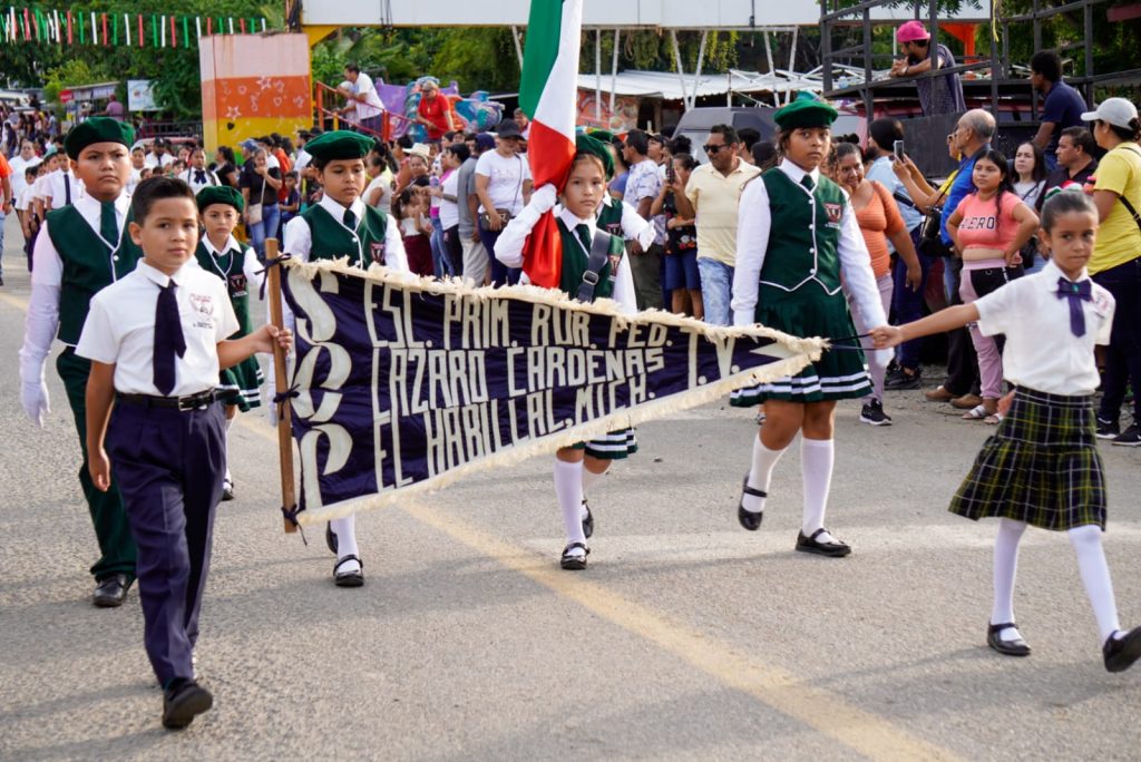 Cd. Lázaro Cárdenas, Mich., a 30 de Septiembre del 2025.- La comunidad de Acalpican de Morelos se llenó de color este martes con el tradicional desfile por el 260° aniversario del natalicio de José María Morelos y Pavón; un evento que registró una gran participación de escuelas de diferentes niveles educativos, quienes se unieron para honrar el legado del Siervo de la Nación.