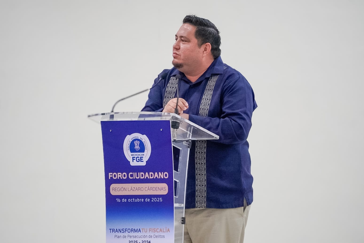 Cd. Lázaro Cárdenas, Mich., a 16 de octubre de 2025.- Con el objetivo de fortalecer el Plan de Persecución del Delito (PPD) y fomentar la participación ciudadana, se llevó a cabo el Foro Ciudadano Regional “Transforma tu Fiscalía” en Lázaro Cárdenas, con la participación de autoridades municipales, estatales y federales, asi como legislativas, del sector productivo y educativo.