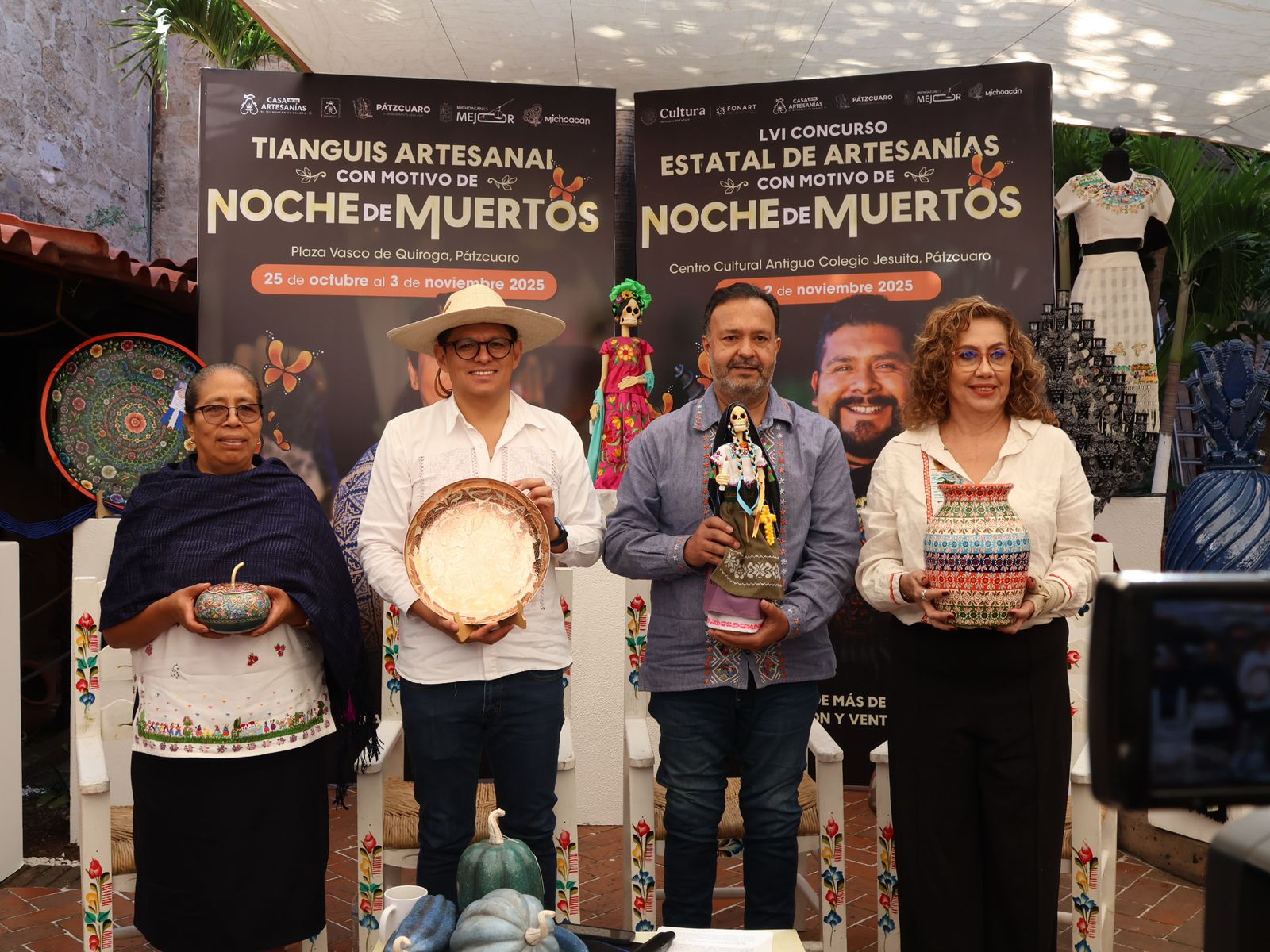 Morelia, Michoacán, 23 de octubre de 2025.- En el marco de la Semana de Celebración de la Noche de Muertos, el Pueblo Mágico de Pátzcuaro se prepara para la celebración de la edición 56 del Concurso Estatal de Artesanías, en el que se entregará un millón de pesos repartidos en 113 premios para quienes resulten ganadores, informó el director general de la Casa de las Artesanías (Casart), Cástor Estrada Robles.