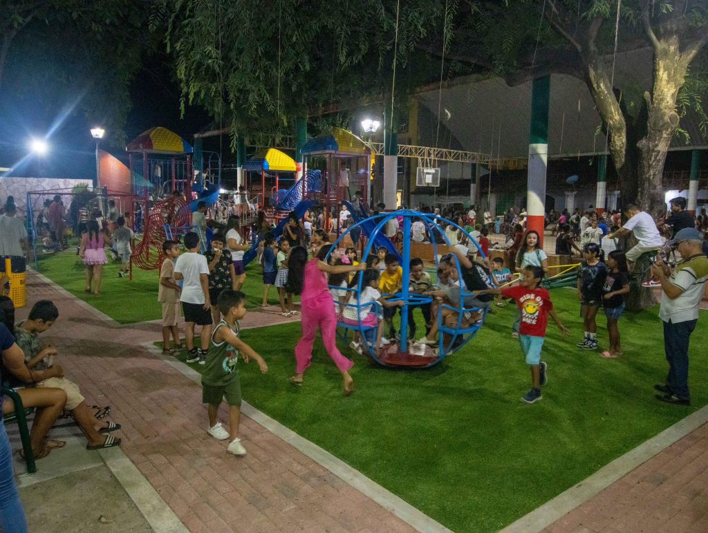 *Una nueva imagen que cuenta con un Kiosco rodeado de plantas y bancas, juegos infantiles y una iluminación perfecta para disfrutar noches de luna llena en provincia