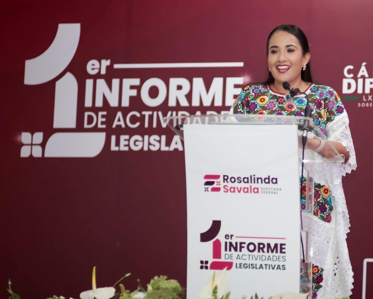 Lázaro Cárdenas Mich, 26 de octubre de 2025.- La Diputada Federal morenista, Rosalinda Savala Díaz, dio ayer su Primer Informe Legislativo en este puerto, y ante cientos de invitados de todos los sectores sociales, dio a conocer a través de video las iniciativas y el trabajo en apoyo a la educación, a la salud, al campo entre otros que ha realizado en este distrito durante un año y su lema es “servir al pueblo lazarocardenense”.