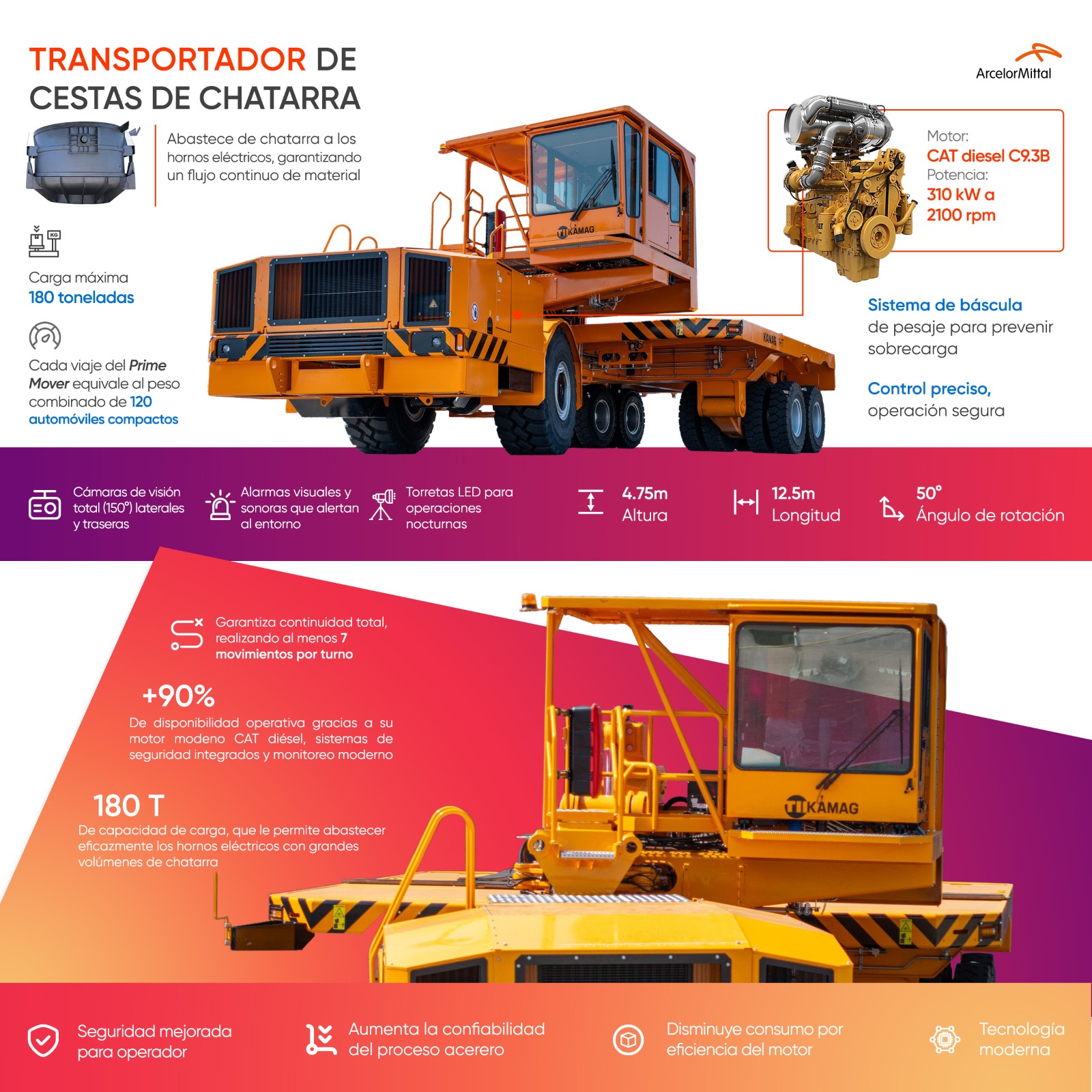 Lázaro Cárdenas, Mich. – 27 de octubre de 2025.- La empresa acerera ArcelorMittal sigue avanzando a las nuevas tecnologías mecánica e integra a sus operaciones un Transportador de Cestas de Chatarra, diseñado para abastecer de manera continua a los hornos eléctricos y optimizar la eficiencia del proceso siderúrgico.