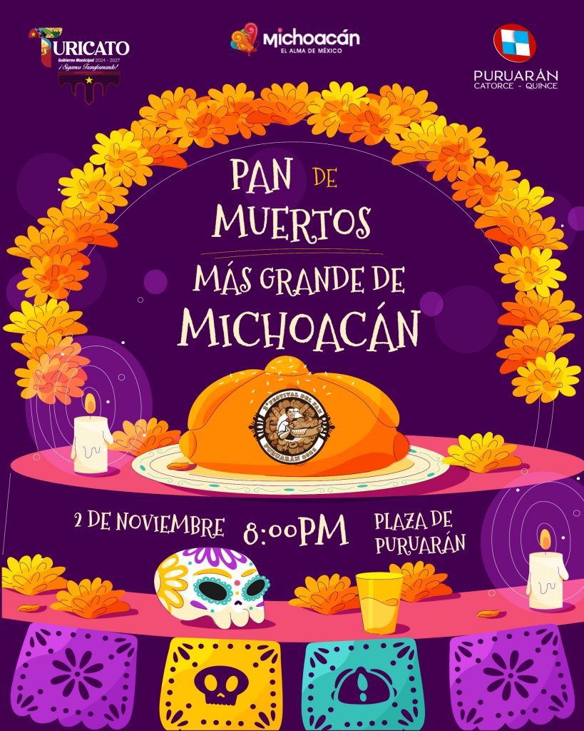 Hernández Arreola destacó que una de las actividades más esperadas es la presentación del pan de muerto más grande de Michoacán, que el año pasado estuvo formado por más de dos mil piezas elaboradas por los panaderos de Puruarán y que se monta con la participación de todo el pueblo, para después ser repartido entre las y los asistentes, sin faltar la taza de chocolate también elaborado por manos puruarenses.
