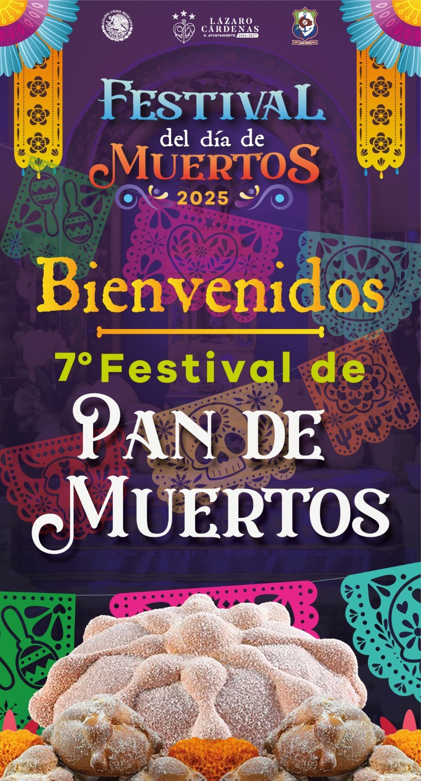 Cd. Lázaro Cárdenas, Mich., a 29 de octubre de 2025.- El Gobierno Municipal de Lázaro Cárdenas invita a la población en general a participar en el 6º Festival de Pan de Muertos, evento que se realizará los días 1 y 2 de noviembre en la explanada municipal, como parte del Festival del Día de Muertos 2025.