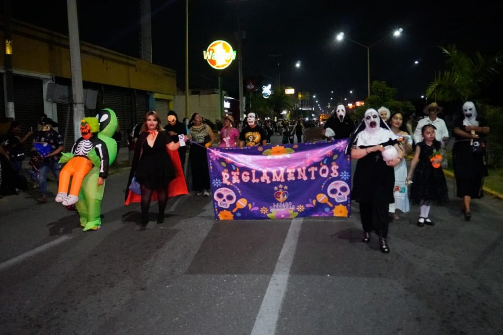 Cerca de las 6:30 de la tarde, cientos de personas se reunieron sobre la avenida Lázaro Cárdenas para presenciar este desfile, que desde hace cinco años se ha convertido en una traición para el disfrute de chicos y grandes; ya que los disfraces, la diversión y el terror no puede faltar en este evento.