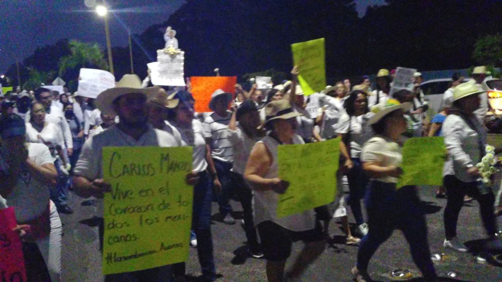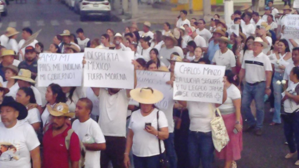 Concertándose en la explanada municipal la tarde-noche de ayer, algunos lideres ya prendidos pretendieron tumbar la valla metálica que resguardaba junto con policías municipales el edificio del ayuntamiento porteño, algunos aventaron piedras a los cristales sin tener éxito de entrar a la mala; cabe destacar que la manifestación fue pacífica y no paso a mayores que, poco a poco se fue disminuyendo el contingente hasta quedar algunos lideres que prendieron veladoras y dieron un minuto de silencio en memoria del luchador social, Carlos Manzo.