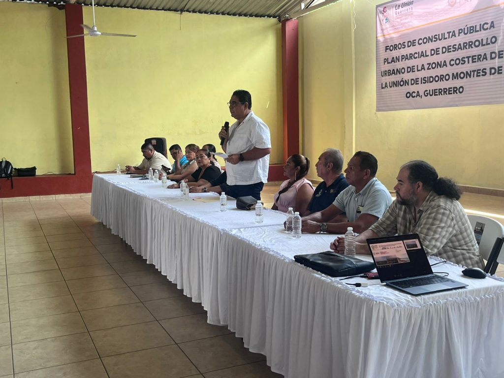 La Unión, Gro. 14 noviembre 2025.— Con el firme propósito de construir un desarrollo urbano ordenado y sustentable, el presidente municipal de La Unión, José Francisco Suazo Espino, encabezó el Foro de Consulta Pública para el Plan de Desarrollo Urbano de la zona costera de Isidoro Montes de Oca, un espacio abierto para que habitantes, sectores productivos y representantes sociales aportaran sus ideas y necesidades.