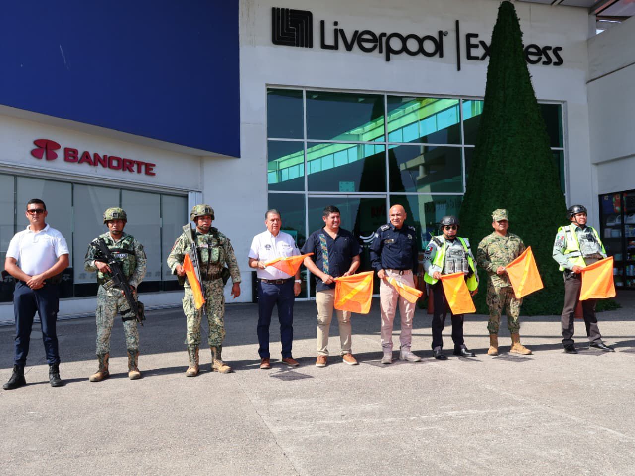 Cd. Lázaro Cárdenas, Mich., a 14 de Noviembre del 2025.- Con el objetivo de garantizar compras seguras y una estancia tranquila para la ciudadanía, este jueves dio inicio el Operativo del Buen Fin, encabezado por las diferentes corporaciones de seguridad establecidas en Lázaro Cárdenas.