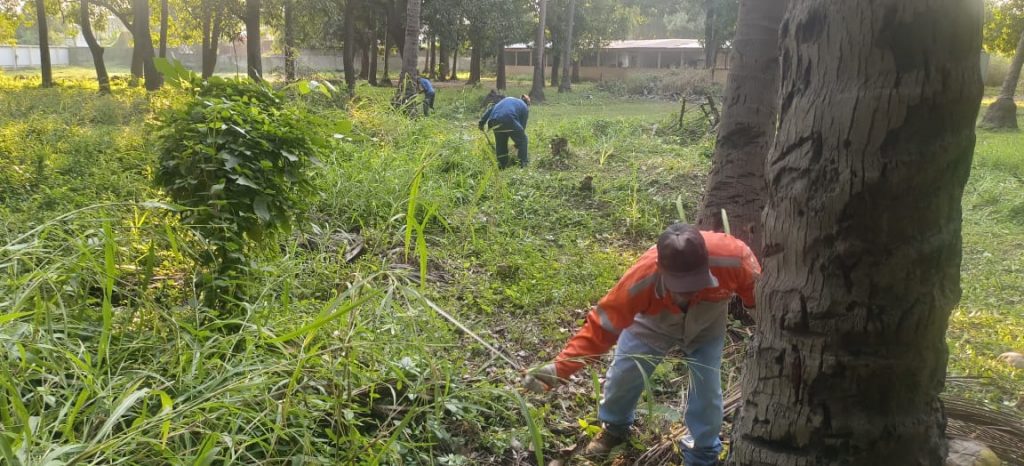 Personal de Parques y Jardines realizó trabajos de poda estética, chaponeo, limpieza de áreas verdes y retiro de basura en distintos espacios del plantel. A estas labores se sumaron docentes y padres de familia, quienes participaron activamente en el saneamiento de áreas comunes.