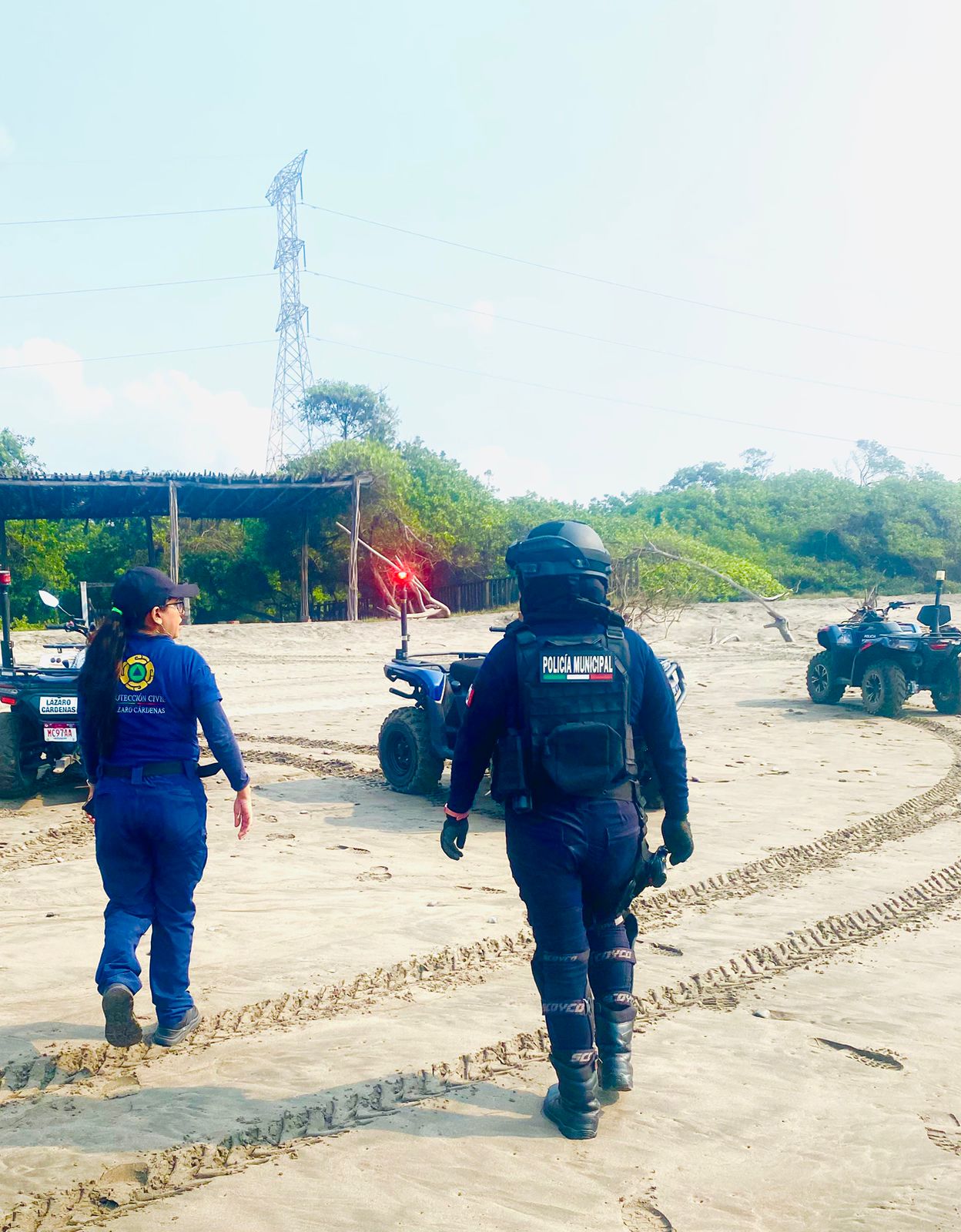 Elementos de Seguridad Pública Municipal, Guardia Civil, Protección Civil del Estado, Protección Civil Municipal, Fire-Sor, salvavidas municipales y lancheros locales recorren la franja costera y zonas adyacentes, ampliando el perímetro ante la posibilidad de que las corrientes marinas lo hayan arrastrado a otro punto de la playa.
