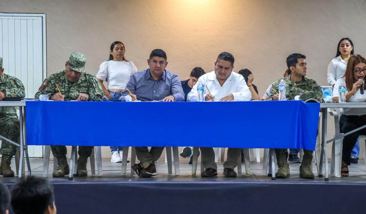 También estuvieron presentes los integrantes de la Junta Municipal de Reclutamiento: Gustavo Toribio Leal, Oficial Mayor; Marisol Sandoval Licea; Roberto Carlos Rosales Cruz, Érica Sarahí Vázquez y Aurora Cubillas Gutiérrez, encargada de la Junta Municipal de Reclutamiento.