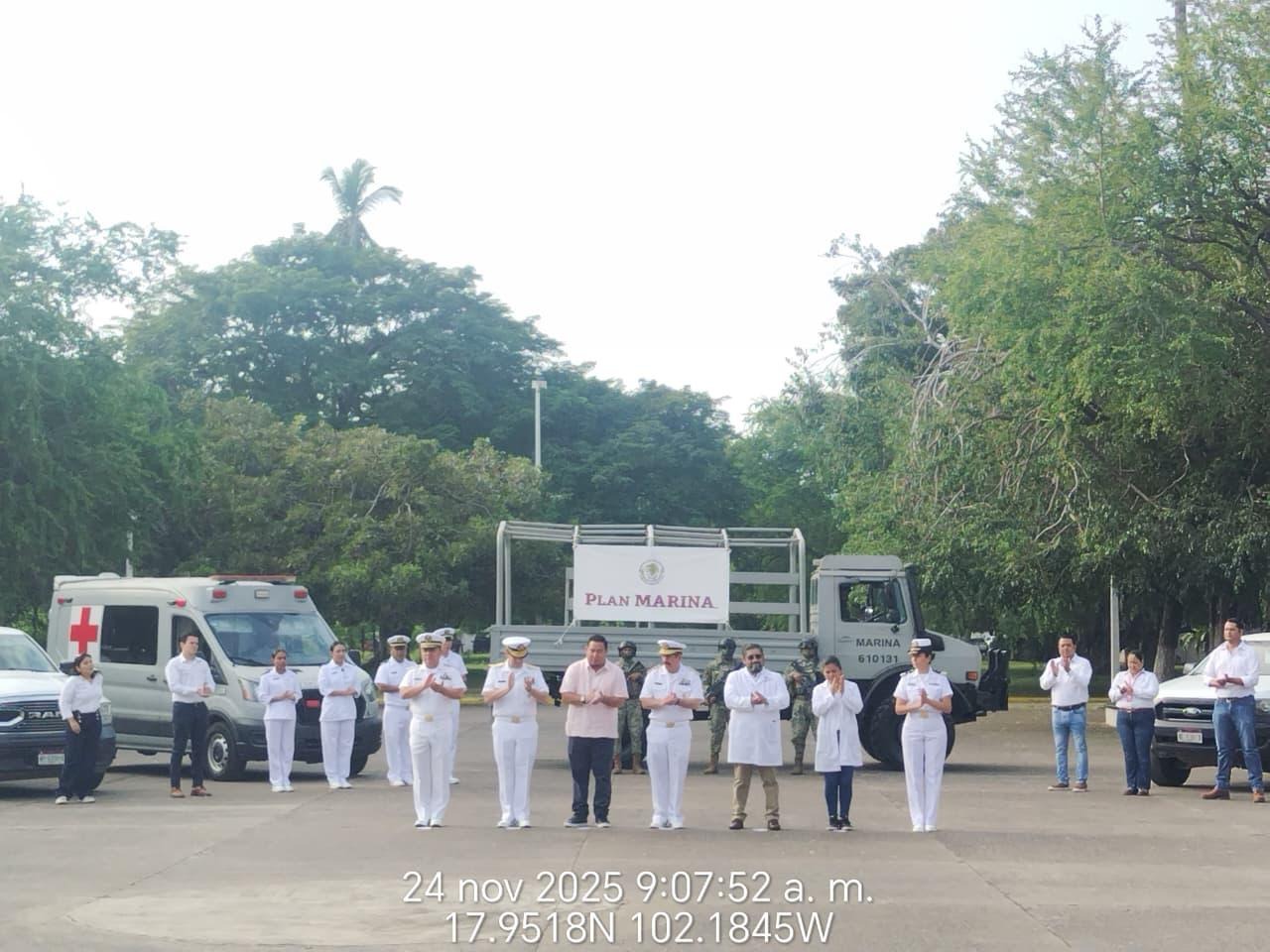 Lázaro Cárdenas, Mich. 25 de noviembre de 2025. – La Secretaría de Marina, a través de la Armada de México, por conducto de la Décima Sexta Zona Naval, en coordinación con el Gobierno Municipal de Lázaro Cárdenas, y el Sector Salud, en el marco del programa “Atención Médica de Primer Contacto en Lugares de Difícil Acceso”, informa que hoy, personal naval dio el banderazo de arranque de dicho programa, con el objetivo de proporcionar atención médica a la población más vulnerable en las comunidades de La Placita, Zapote de Madero, Motín del Oro, Colola, Cachán de Echeverria, Cuilala, Huahua, Mexcalhuacan, Chuquiapan, El Bejuco, Chucutitán y El Colomo, en el estado de Michoacán.