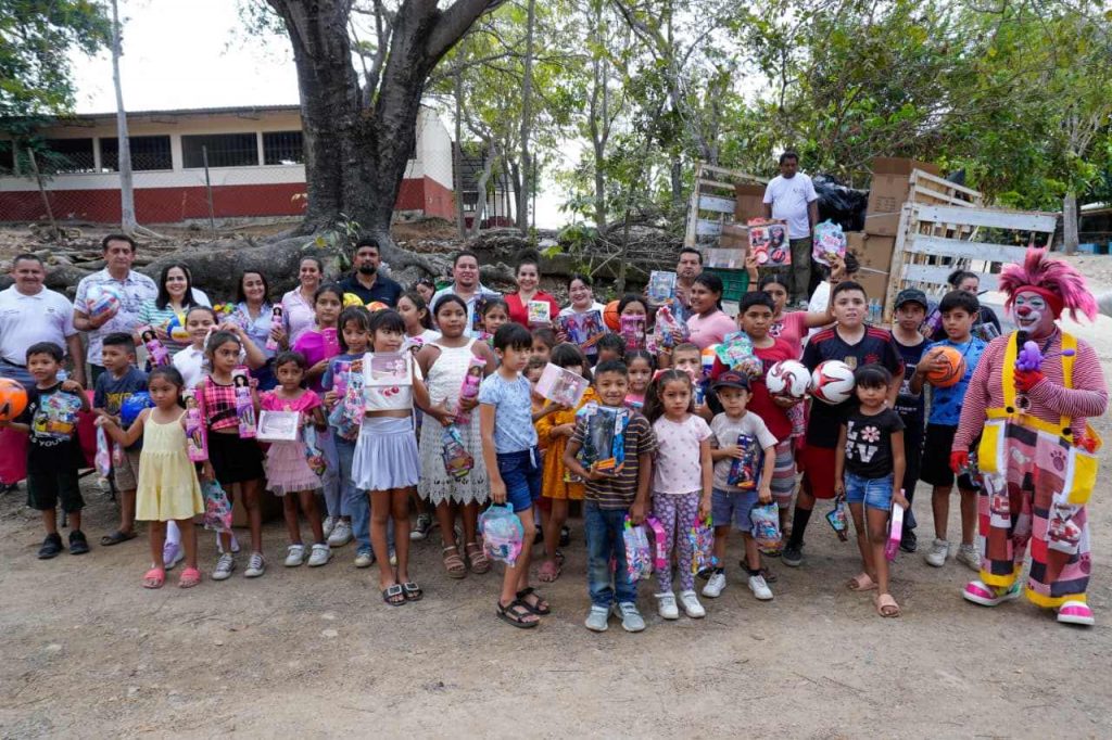 Los Encargados del Orden de Los Amates y el Reino, Jesús Reyes Ramírez y José Ángel Gómez Ortega, agradecieron a las autoridades por llevar este momento de alegría a los pequeños, ya que además de los regalos, recibieron el show del payaso Chiquitín y snacks para degustar.