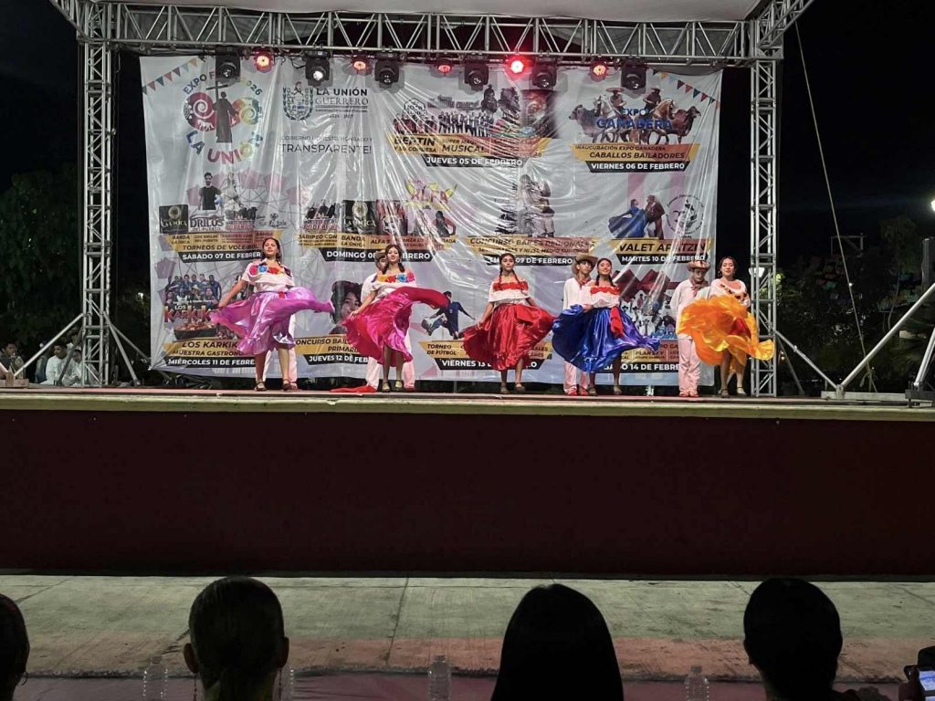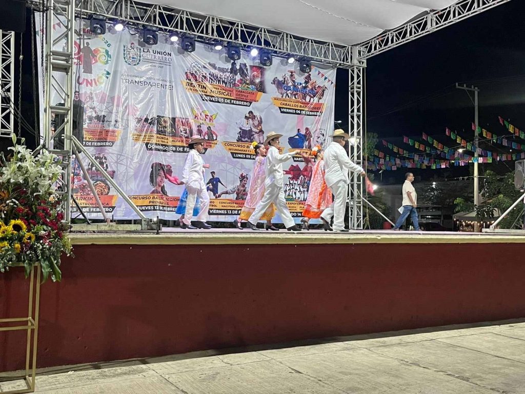 La Unión, Gro. 10 feb 2026.- Con trajes llenos de color, música tradicional y entusiasmo juvenil, estudiantes de secundaria y nivel medio superior protagonizaron una noche dedicada a celebrar las raíces culturales de La Unión.