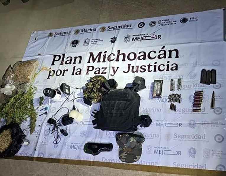 Cerca de Caleta de Campos, Michoacán, el personal integrante del Plan Michoacán por la Paz y Justicia, en recorridos de disuasivos localizó un vehículo tipo Pick Up con impactos de bala, en cuyo interior se encontraba un chaleco táctico, cartuchos de diversos calibres, plantas y semillas con características similares a la marihuana, estas últimas, así como dosis con características similares a las del cristal, cargadores de radio, y diversas identificaciones.