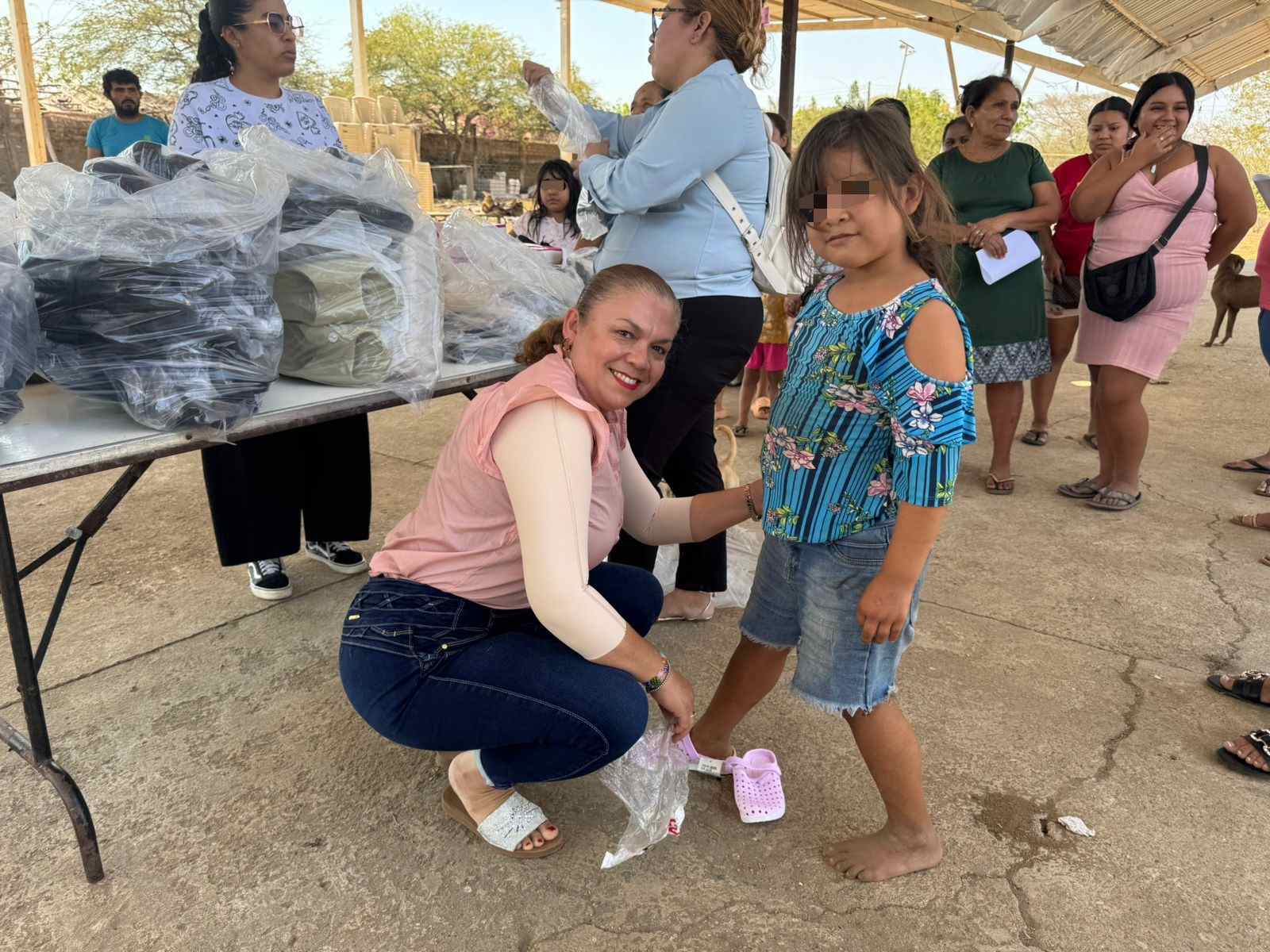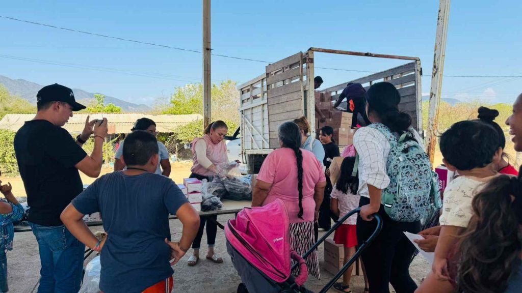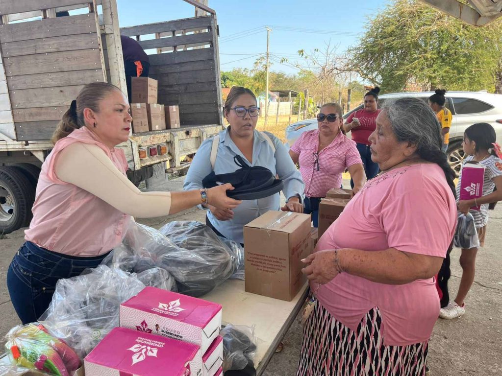 Durante la visita se entregaron despensas y calzado a niñas, niños, jóvenes y personas adultas, apoyos que buscan contribuir a mejorar las condiciones de vida de las familias beneficiadas.