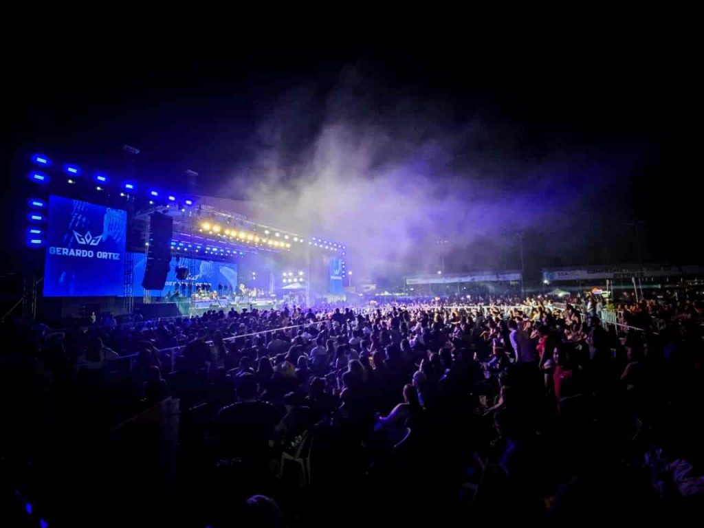 Cd. Lázaro Cárdenas, Mich., a 22 de Marzo del 2026.- Una gran noche vivieron los habitantes de Lázaro Cardenas durante el concierto del cantante Gerardo Ortiz, quien con un lleno total se presentó este sábado en el Teatro de las Estrellas de la Expo Fiesta LZC 2026; logrando reunir a más de 5 mil personas en el campo uno de la unidad deportiva.