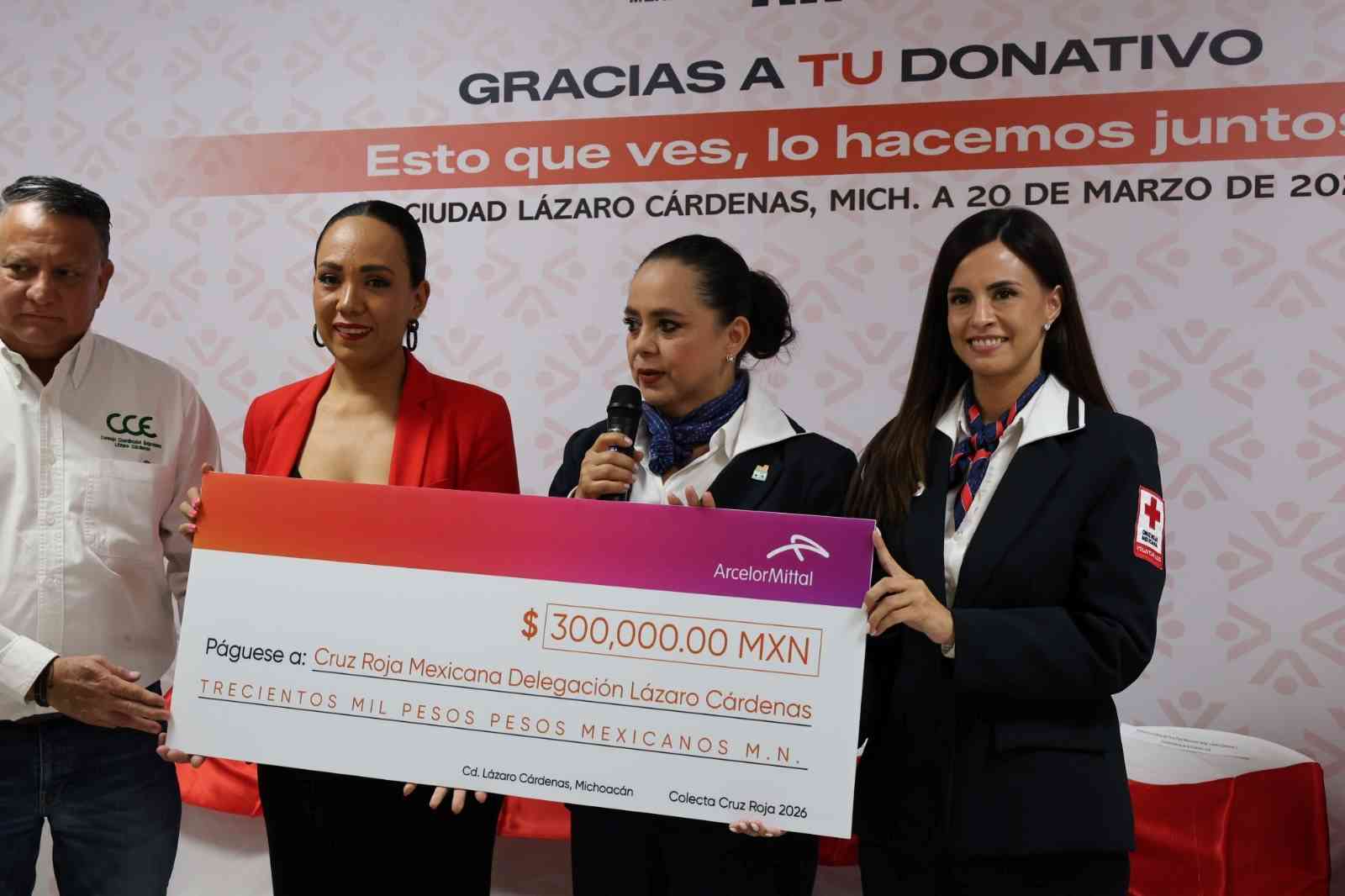 Lázaro Cárdenas, Michoacán, 27 de marzo, 2026.- En el marco de la Colecta Nacional 2026 de la Cruz Roja Mexicana, ArcelorMittal México reiteró su compromiso con las comunidades de Lázaro Cárdenas mediante un donativo económico destinado a fortalecer los servicios de emergencia, atención médica y apoyo humanitario que brinda la institución en la región.