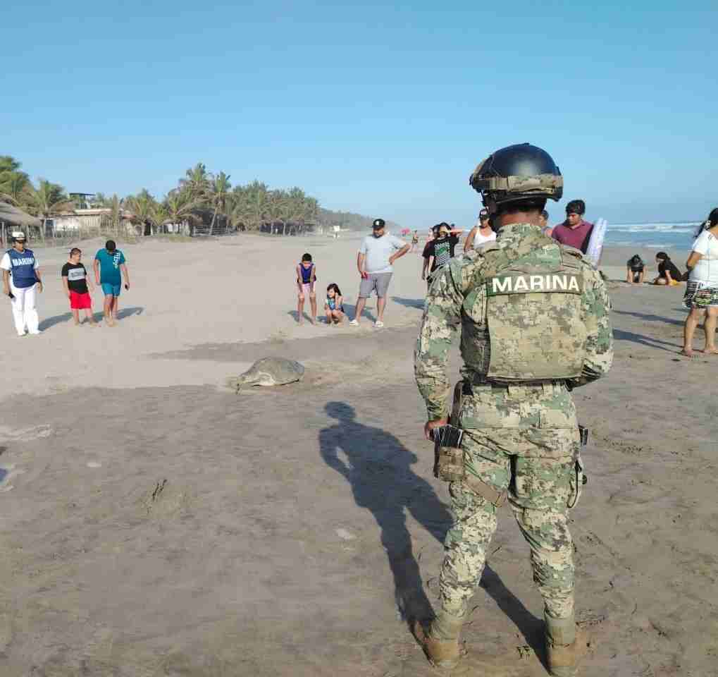 Lázaro Cárdenas, Mich. – 08 de abril de 2026.- La Secretaría de Marina a través de la Armada de México por conducto de la Décima Sexta Zona Naval, informa que, en días pasados personal naval desplegado en la “Operación Salvavidas Semana Santa 2026”, llevó a cabo el resguardo de una tortuga golfina con 97 huevos en Playa Azul, Michoacán.